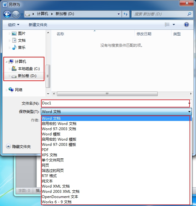 在右侧的计算机栏,可以选择word文档的存储位置;文件名可以按照word文档的主题命名;保存类型可以选择你需要保存的word类型。