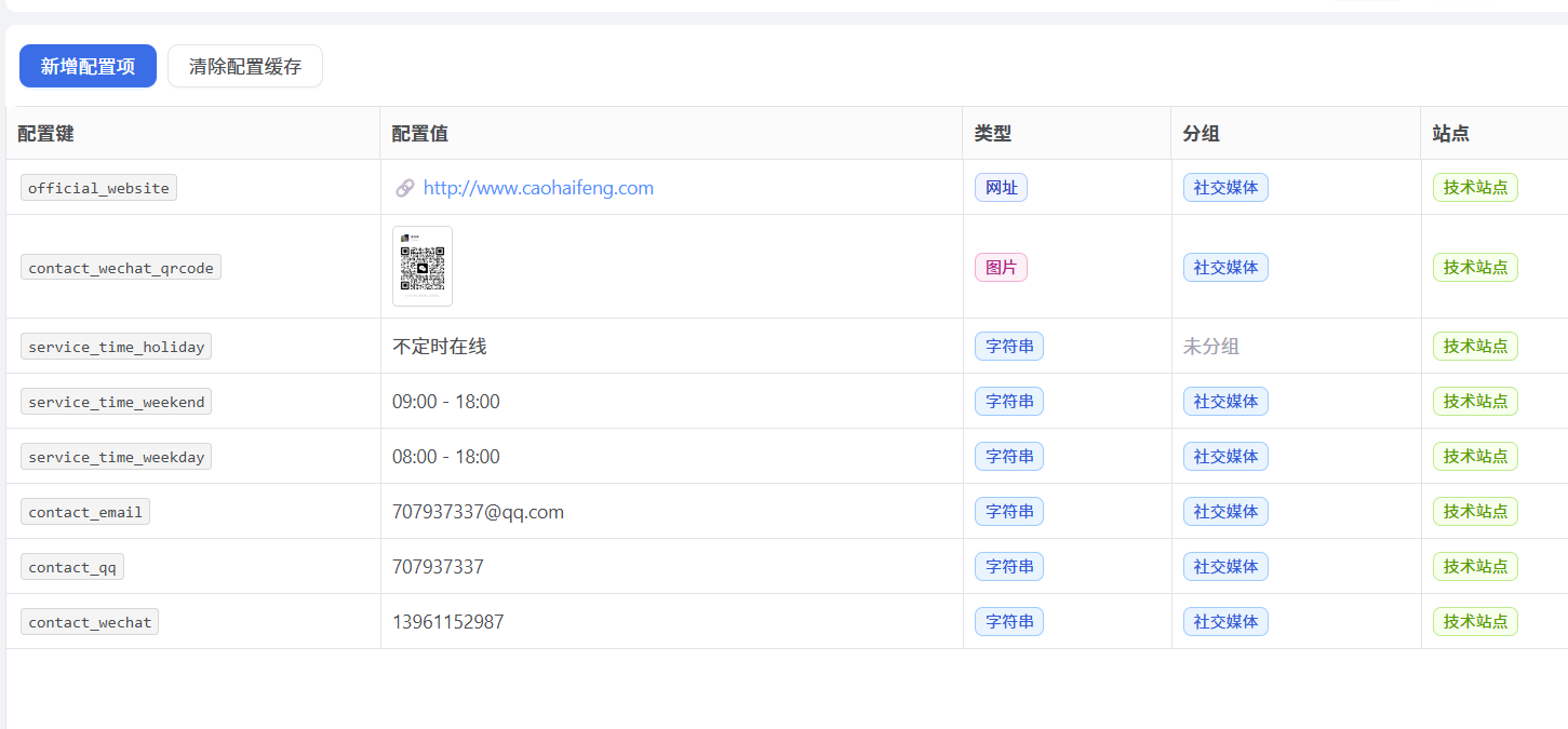 - 进入「站点管理」-「配置项管理」
